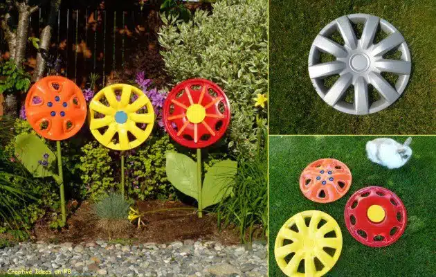 A few pieces of art, like the donkey tire art, will definitely improve the look of your yard. Use hubcaps or colorful PET bottles to design flowers and other sort of art.