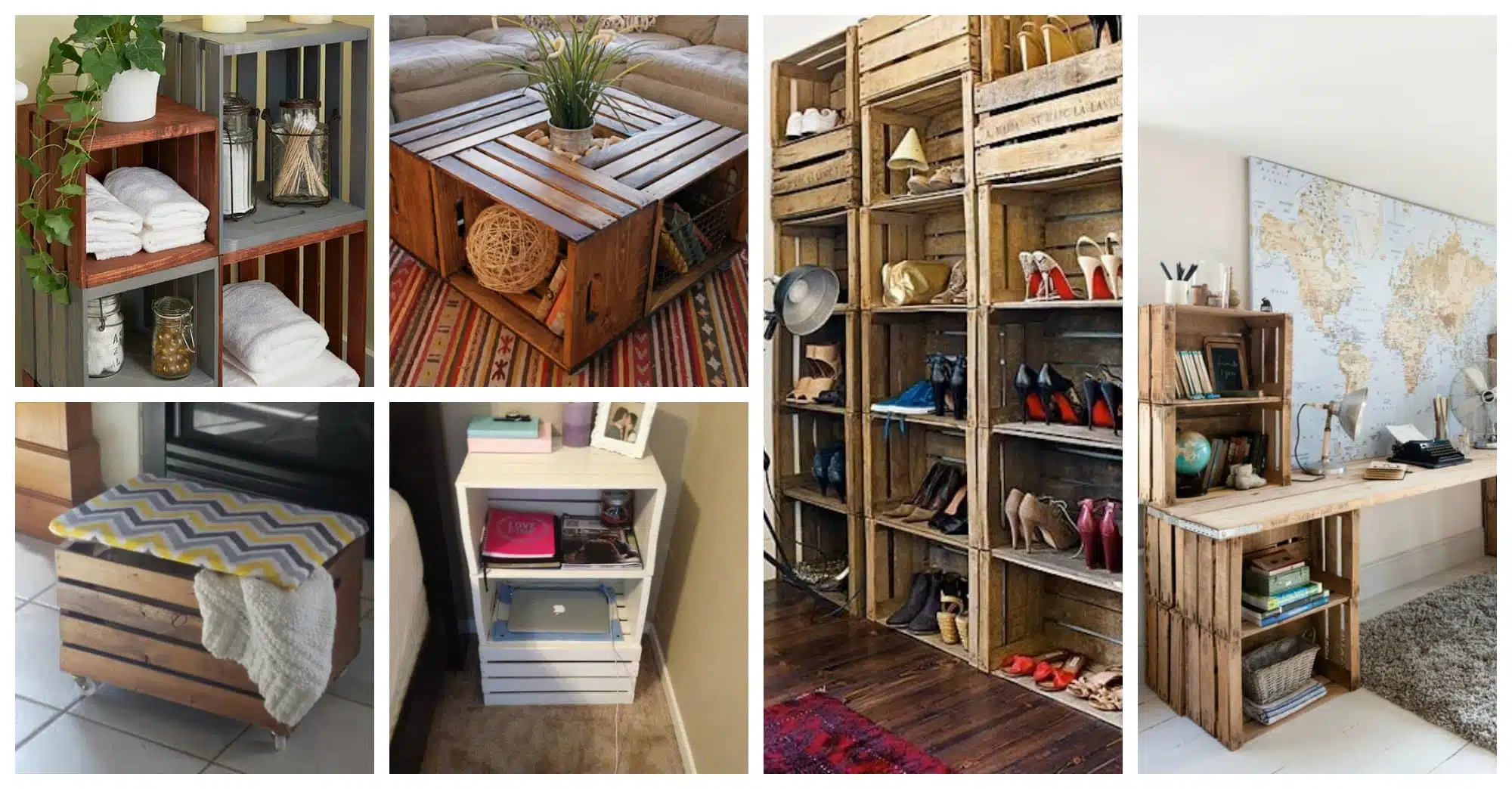 They are cheap and accessible so you can use like storage units or creation pieces of furniture like shelves, stools, bookcases or table.