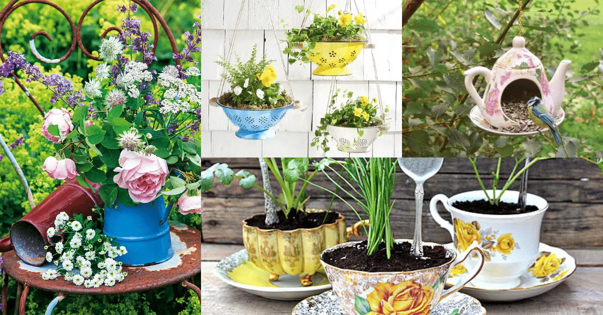 Ideas for decorating the garden with kitchen utensils
